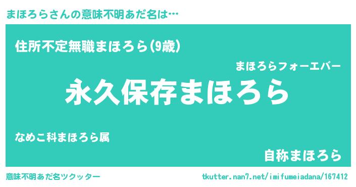 | 男性向けラノベタイトル風あだ名 | 『まほろらという概念が存在しない退屈な世界 』 |