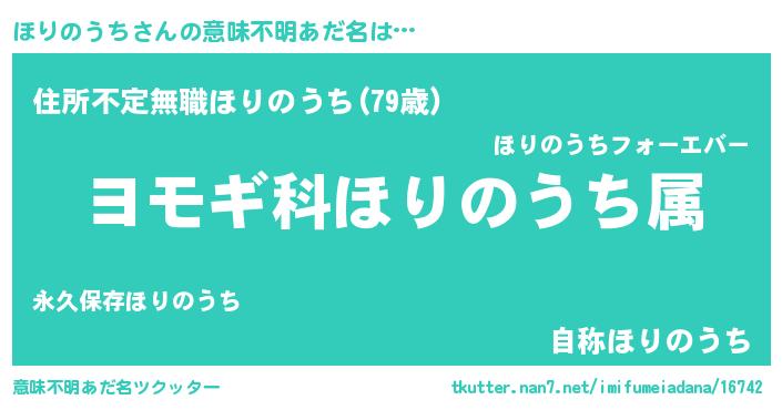 | 女子向けラノベタイトル風あだ名 | 『ほりのうちの玉の輿計画!』 |