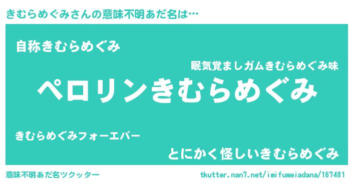 | 女子向けラノベタイトル風あだ名 | 『(仮)きむらめぐみのやんごとなき事情』 |