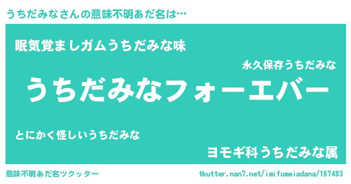 | 男性向けラノベタイトル風あだ名 | 『やはりうちだみなの青春ラブコメはまちがっている 』 |