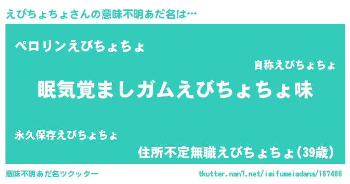 | 欧米人風あだ名 | 『ダニエルえびちょちょ』 |