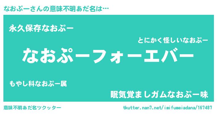 | 欧米人風あだ名 | 『なおぷークリステル』 |