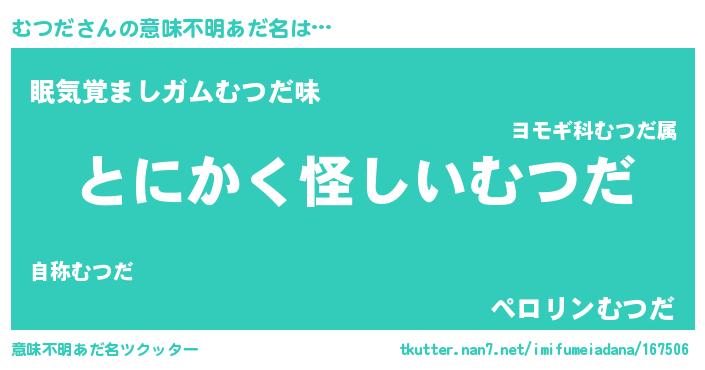 | 女子向けラノベタイトル風あだ名 | 『むつだは平凡を望む』『むつだ恋絵巻』 |