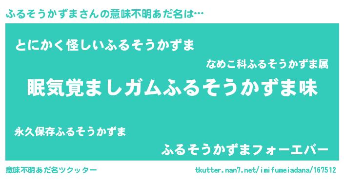 | 女子向けラノベタイトル風あだ名 | 『ふるそうかずま恋絵巻』 |