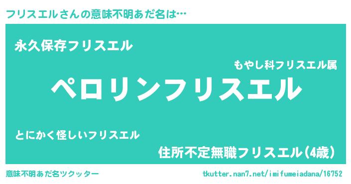 | 男性向けラノベタイトル風あだ名 | 『緋弾のフリスエル』『フリスエルの憂鬱』 |