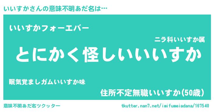 | ヒーロー風カッコイイあだ名 | 『魔戒騎士イイ』『ウルトラいいすかマン』 |