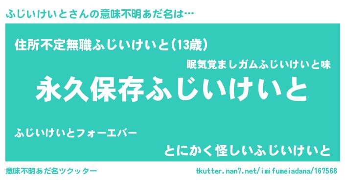 | ヘコむあだ名 | 『ふじいけいと(震え声)』『ふじ太郎』 |