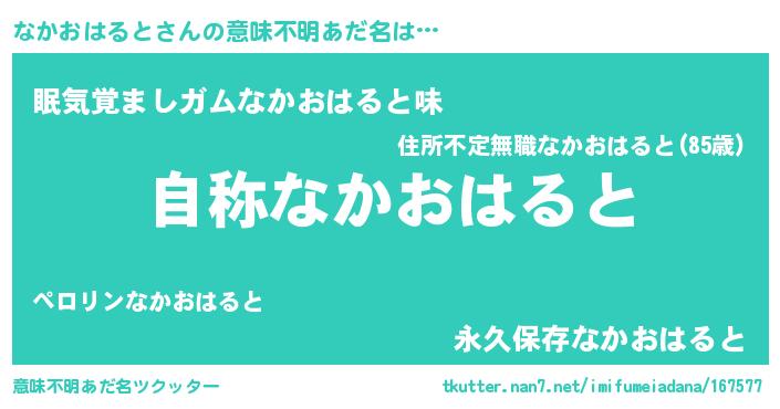 | 欧米人風あだ名 | 『なかおはると・ステッグマイヤー』 |