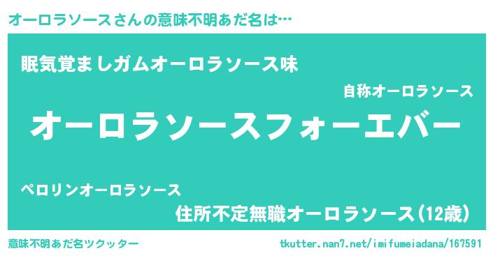 | 男性向けラノベタイトル風あだ名 | 『はたらくオーロラソースさま!』 |