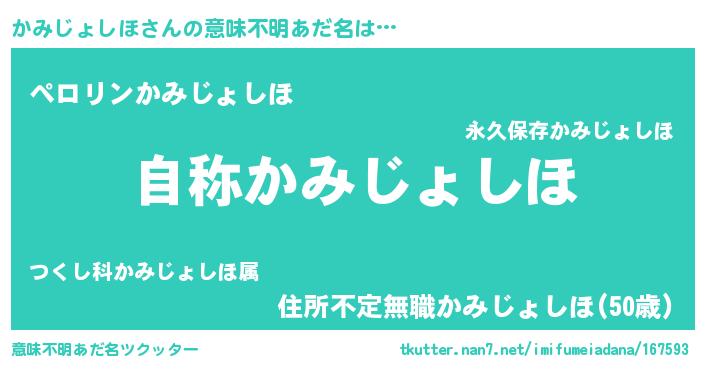 | 胡散臭い通販商品みたいなあだ名 | 『テレビで話題の高麗人参…その名も「かみじょしほ」』 |