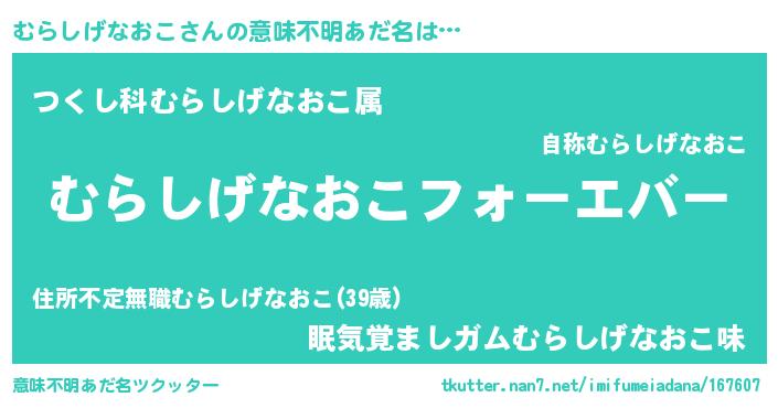 | ファンタジー風あだ名 | 『エターナルムラシゲナオコー』 |