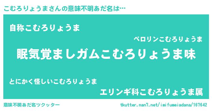 | 男性向けラノベタイトル風あだ名 | 『ノーゲーム・ノーコムロリョウマ』 |