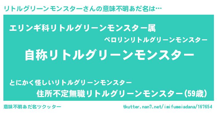 | ヒーロー風カッコイイあだ名 | 『最強戦士リトルグリーンモンスター』 |