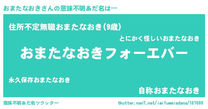 | 欧米人風あだ名 | 『おまたなおき・ステッグマイヤー』 |