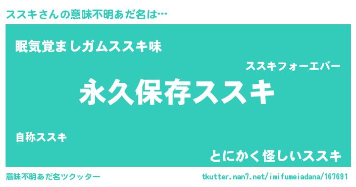 | ヘコむあだ名 | 『ススキ(小並感)』『スス太郎』 |