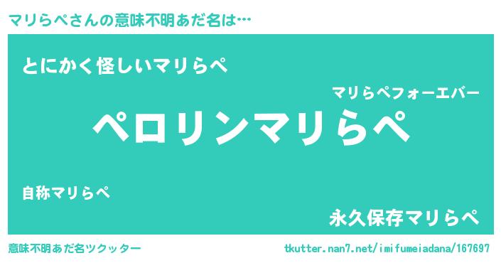 | 胡散臭い通販商品みたいなあだ名 | 『必ず成功するブレスレット…その名も「マリらぺ」』 |