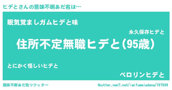 | 男性向けラノベタイトル風あだ名 | 『冴えないヒデとの育てかた』 |