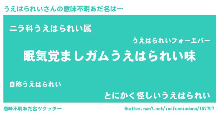 | ヒーロー風カッコイイあだ名 | 『慈愛の使者うえはられい』 |