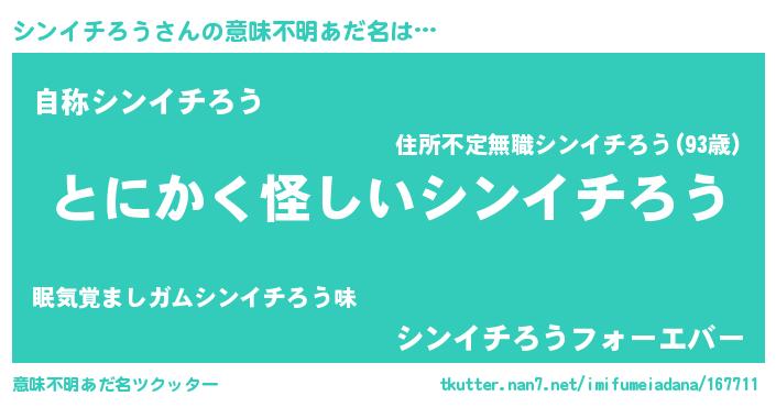 | 胡散臭い通販商品みたいなあだ名 | 『信頼と実績のサプリメント…その名も「シンイチろう」』 |