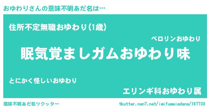 | 恥ずかしいあだ名 | 『ボンバーヘッドおゆ』『オユリンリン』 |