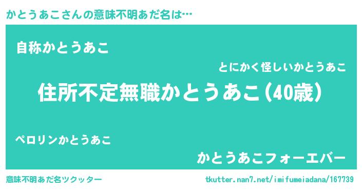 | 料理風あだ名 | 『かとうあこのカルパッチョ風』 |