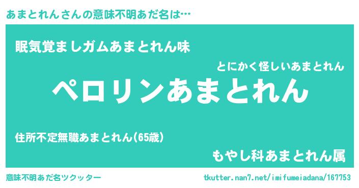| 男性向けラノベタイトル風あだ名 | 『あまとれんの憂鬱』 |