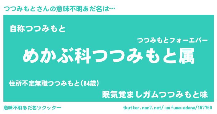 | 男性向けラノベタイトル風あだ名 | 『ツツミモトスレイヤー』 |