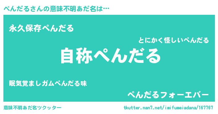 | 男性向けラノベタイトル風あだ名 | 『Re:ぺんだるから始める異世界生活』 |