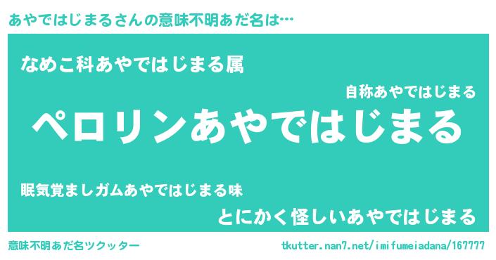| 胡散臭い通販商品みたいなあだ名 | 『モテモテ間違いなし水晶球…その名も「あやではじまる」』 |