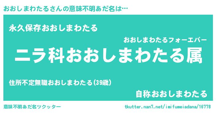 | 欧米人風あだ名 | 『トリンドルおおしまわたる』 |