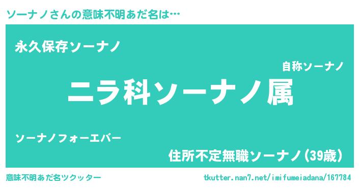 | 欧米人風あだ名 | 『トリンドルソーナノ』 |