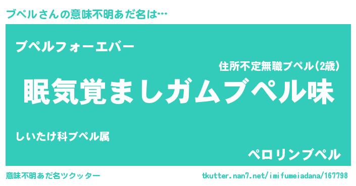 | ヘコむあだ名 | 『豆乳』『ブペもー』『ブペっぺ』 |