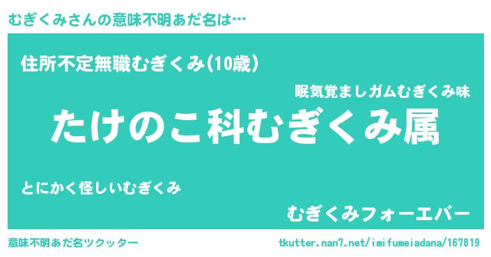 | ヒーロー風カッコイイあだ名 | 『仮面ムギダー』『ウルトラむぎくみマン』 |
