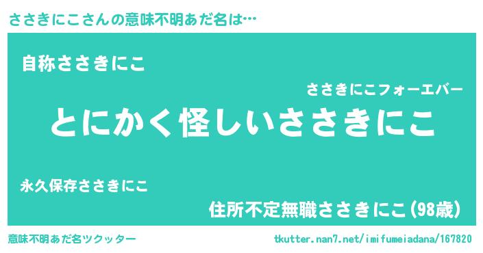 | 欧米人風あだ名 | 『ウサインささきにこ』 |