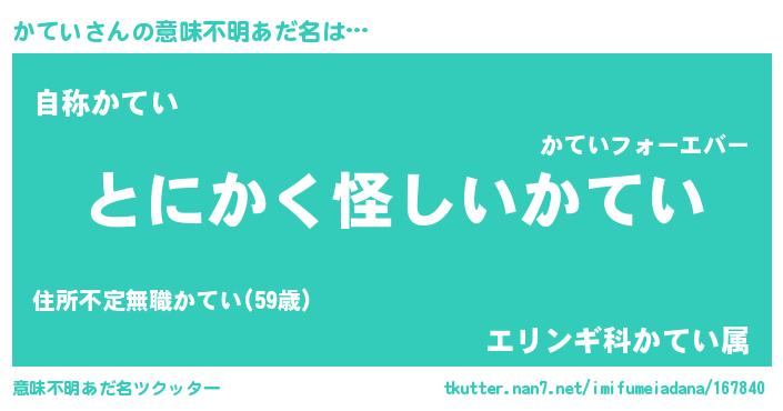 | 胡散臭い通販商品みたいなあだ名 | 『全米が絶賛したサプリメント…その名も「かてい」』 |