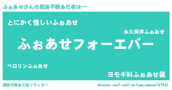 | 欧米人風あだ名 | 『ふぉあせクリステル』 |