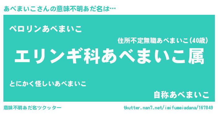 | 男性向けラノベタイトル風あだ名 | 『アベマイコスレイヤー』 |