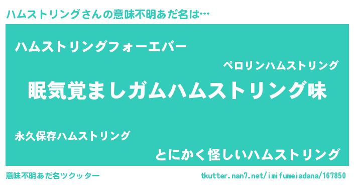 | ヒーロー風カッコイイあだ名 | 『正義の使者ハムストリング』 |