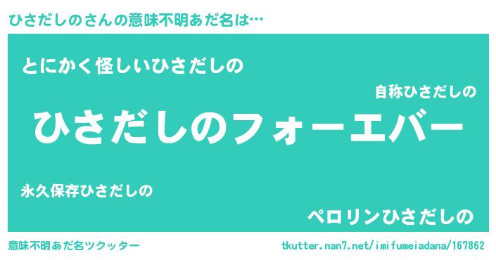 | 男性向けラノベタイトル風あだ名 | 『ひさだしのに滅ぼされるだけの簡単なお仕事です』 |