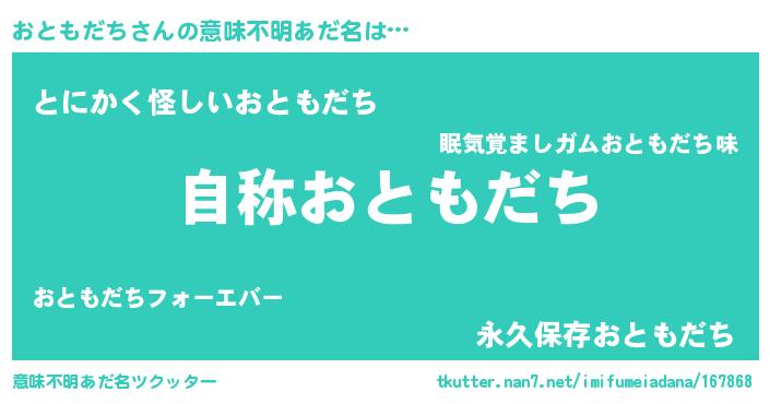 | ヒーロー風カッコイイあだ名 | 『究極戦士オトモダチ』『黄金騎士オト』 |