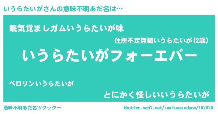| 胡散臭い通販商品みたいなあだ名 | 『幸せが訪れる高級そうな壺…その名も「いうらたいが」』 |