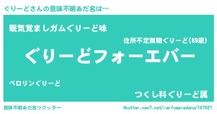 | 肩書あだ名 | 『ぐりーど船長』『ぐりーど総理大臣』 |
