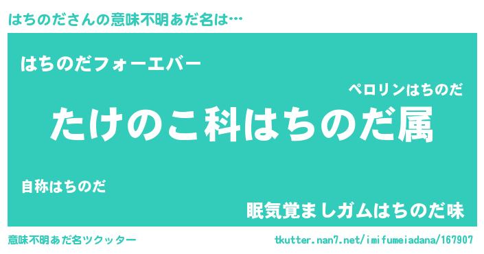| 料理風あだ名 | 『はちのだごはん』 |