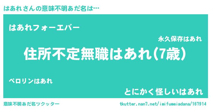 | ヒーロー風カッコイイあだ名 | 『仮面ハアダー』『ウルトラはあれマン』 |