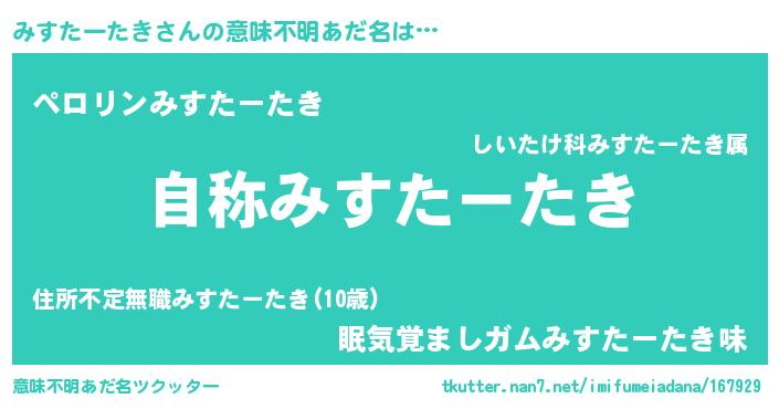| ヘコむあだ名 | 『みすふぇ~』『みすたーたき(震え声)』 |