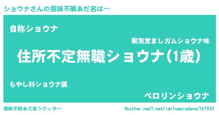 | ヘコむあだ名 | 『ショにー』『ショウナ(震え声)』 |