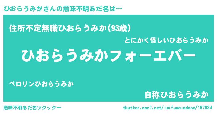 | ファンタジー風あだ名 | 『エターナルヒオラウミカー』 |