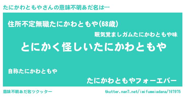 | ポケモン風あだ名 | 『ヒタニカワトモヤ』『メロタッニ』 |
