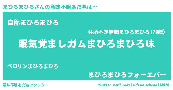 | 男性向けラノベタイトル風あだ名 | 『ノーゲーム・ノーマヒロマヒロ』 |