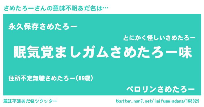 | ヘコむあだ名 | 『さめたろー(笑)』『さめもー』 |